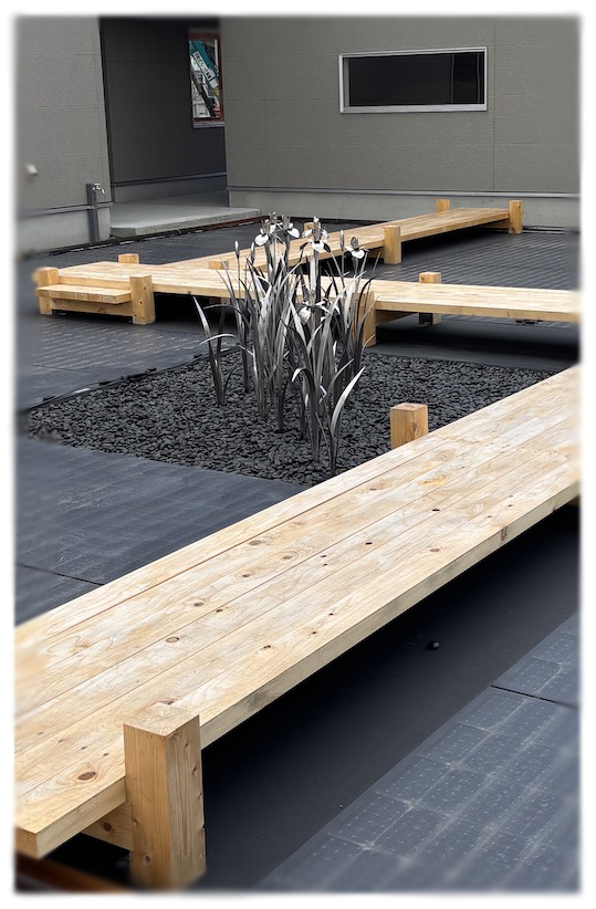 - 「光の庭」燕子花 ステンレス スティール・フレキシブル太陽電池